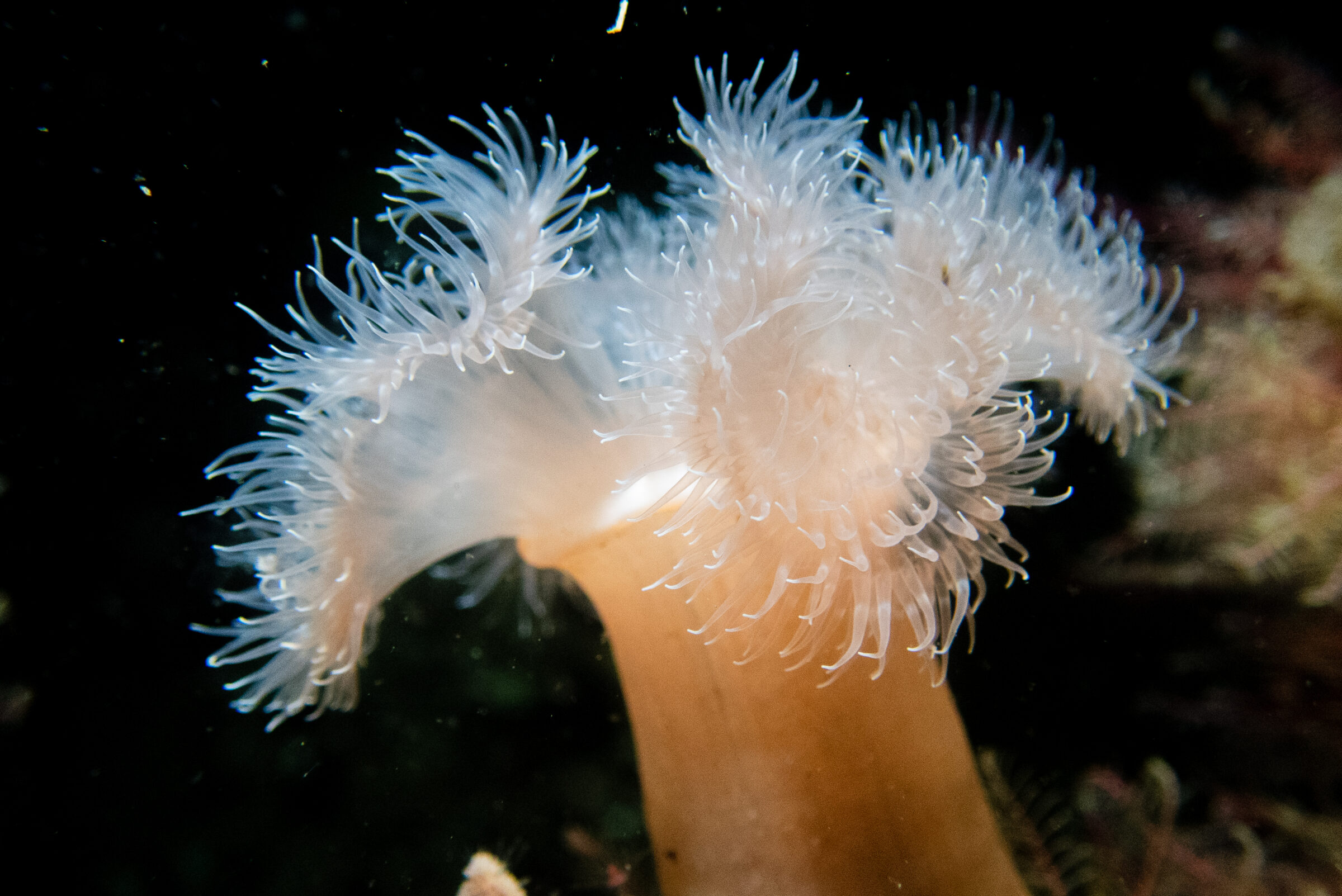 Day 2 and a chance to blow out the cobwebs with a 30min steam to Loch Goil. We started with a varied wall dive starting with an overhang filed with peacock worms continuing to a series of boulders providing shelter to young cod, squat lobsters, cup corals, sea loch anemone and an elusive conga eel only spotted by 1 buddy pair [me!]. The wall continued and looked full of life but alas it was time to surface. Dive 2 and a rarity for me, a shipwreck sunk in the 21st Century. The Averella was being refurbished for a new life as a live aboard before sinking on its moorings, make of that what you will. But with a rudder and prob still in place and several firework anemone in the slit below it was an excellent dive. She sits in 32m with the superstructure starting at 24m. A trip highlight for me